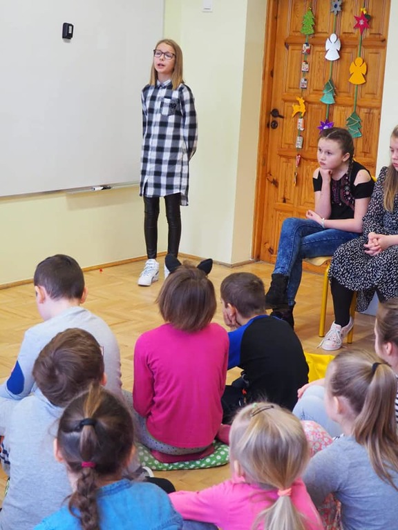 Uczniowie klas 4-8 wzięli udział w szkolnych eliminacjach do konkursu recytatorskiego Warszawska Syrenka. Prezentowane utwory wywołały wśród słuchaczy zarówno uśmiech, jak i wzruszenie. Najważniejsze jednak, że wszyscy uczestnicy z zadowoleniem zakończyli wspaniałe występy.