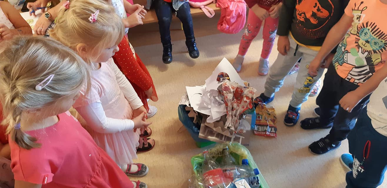 "Sprzątanie świata - Polska" jest częścią międzynarodowego ruchu na rzecz ochrony środowiska Clean up the World wywodzącego się z Australii. Sprzątanie świata to wspólna lekcja poszanowania środowiska, której celem jest promowanie nieśmiecenia, edukacja odpadowa oraz edukacja ekologiczna, dzięki której zmniejszy się nasz negatywny wpływ na środowisko. Sprzatanie świata obchodziły również Przedszkolaki z Kazunia Nowego. Dzieci na początku podczas oglądania filmu edukacyjnego poznały zasady segregacji śmieci, dowiedziały się czym jest recykling i dlaczego należy oszczędzać wodę i energię elektryczną. Następnie wykonały pracę plastyczną utrwalającą wiedzę ekologiczną. Kolejnym punktem obchodów tego dnia było sprzątanie przedszkola i boiska szkolnego, gdzie przedszkolaki miały za zadanie pozbierać śmieci i powkładać je do odpowiednich pojemników. To zadanie wywołuje zawsze wiele radości i skupienia - do którego kosza, który śmieć? Piątek 18 września, to był bardzo udany dzień, w którym każdy z nas miał poczucie, że robi coś ważnego dla całego Świata.