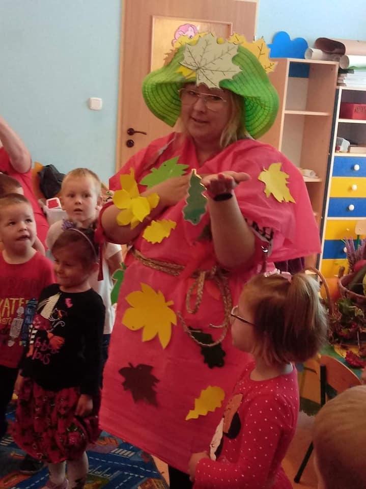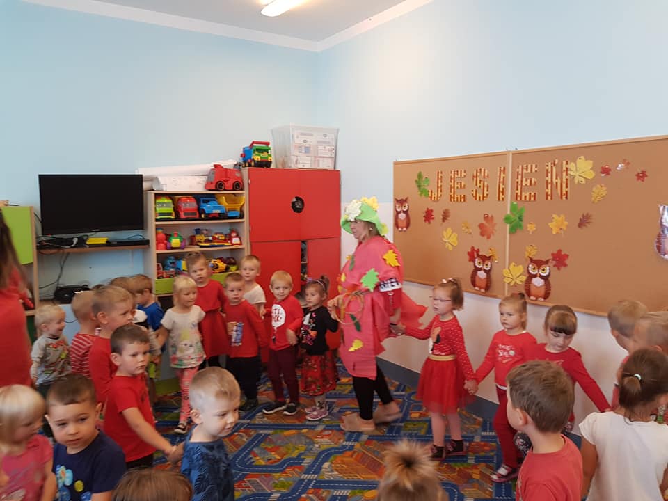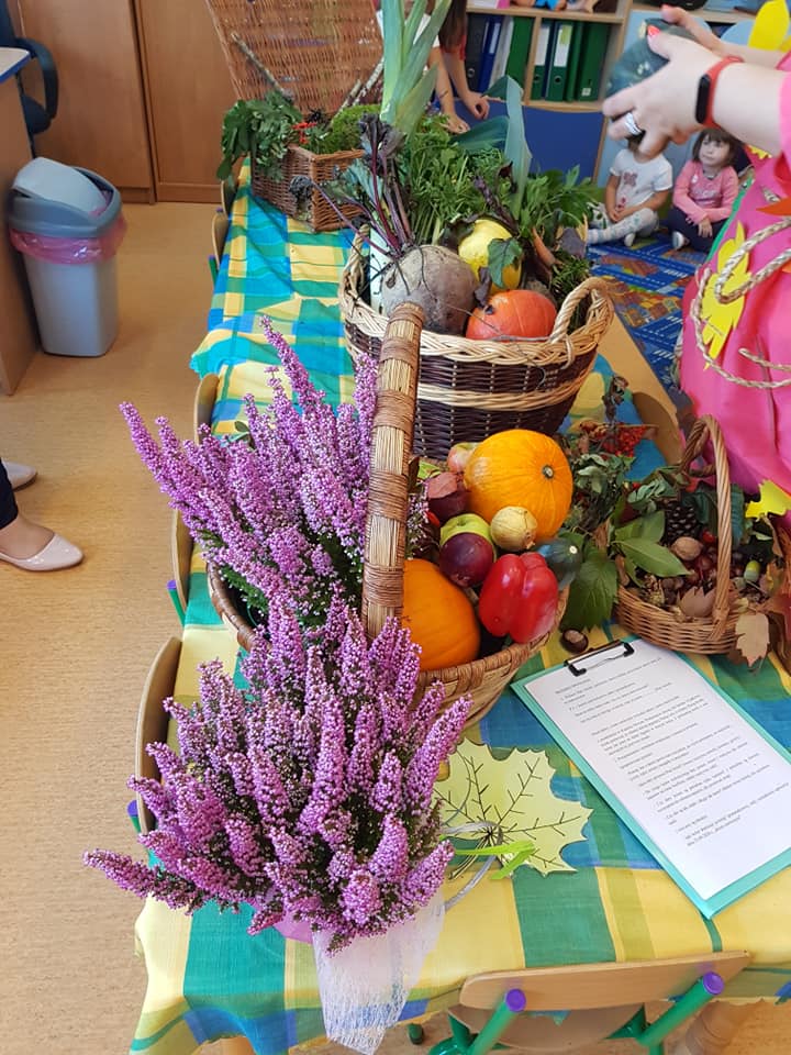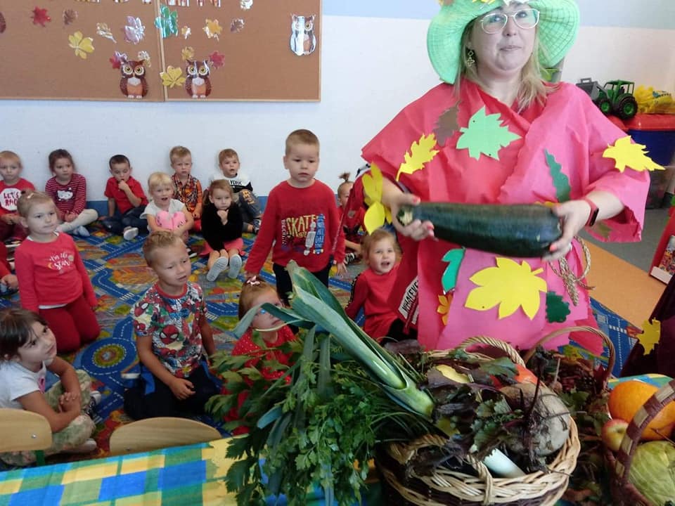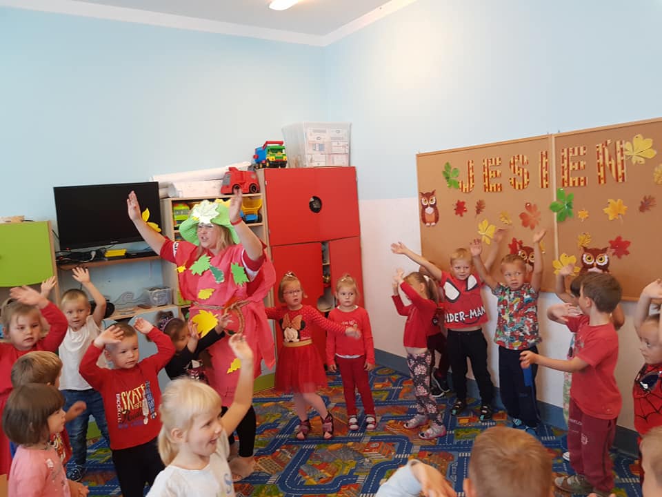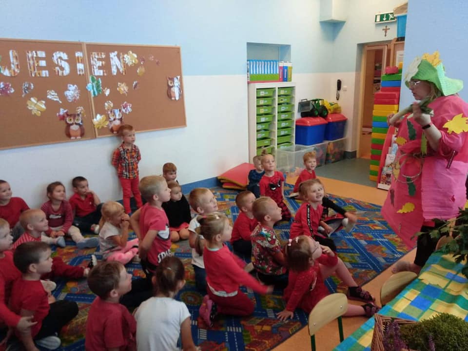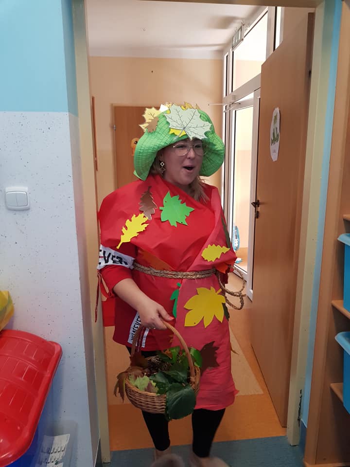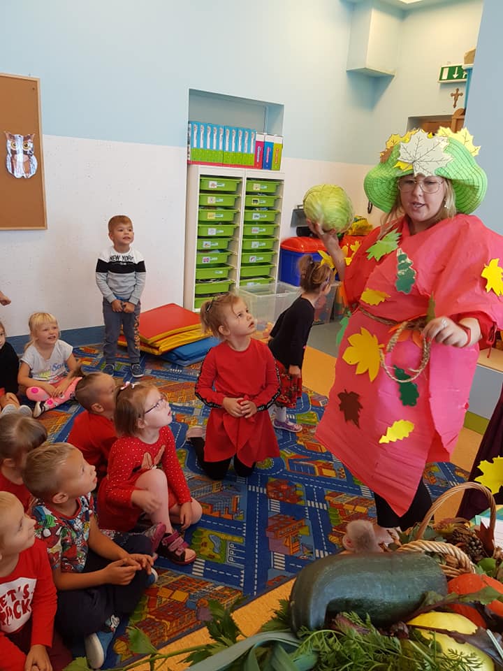 23 września 2020 r. zgodnie z tradycją w naszym przedszkolu odbyło się "Powitanie Pani Jesieni". Z tej okazji dzieci z naszego przedszkola, pod okiem swoich wychowawczyń przygotowały piękną inscenizację, by uroczyście powitać naszego gościa oraz by przybliżyć najmłodszym dzieciom czym charakteryzuje się jesienna pora. Pani Jesień pokazała dzieciom wszystkie swoje skarby jakie ze sobą przyniosła. Następnie razem z Panią Jesienią wszystkie przedszkolaki przypomniały sobie oraz utrwaliły wiadomości o tematyce jesiennej. Nie zabrało także wspólnej zabawy przy piosenkach. Przedszkolaki odpowiadały na zagadki, które przygotowała dla nich Pani Jesień. Celem tych zabaw było integrowanie się dzieci, a przede wszystkim wspaniała zabawa! Dzieci były bardzo aktywne. Na koniec uroczystości wszystkie dzieci wykonały pracę plastyczną.
