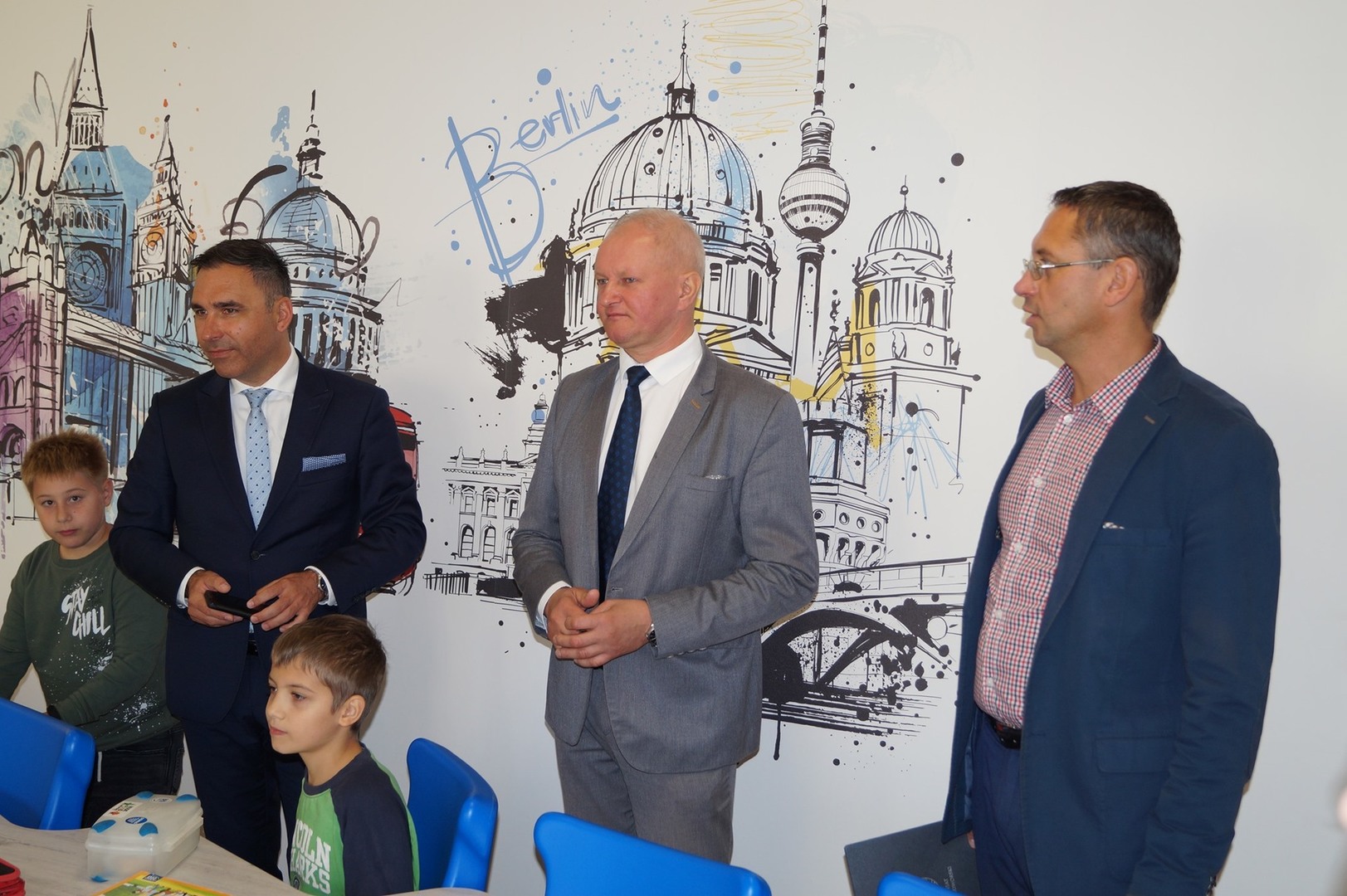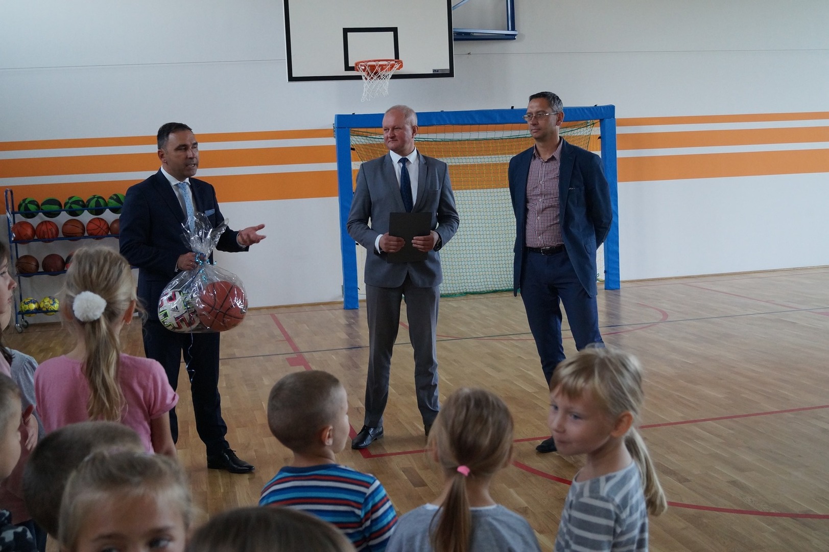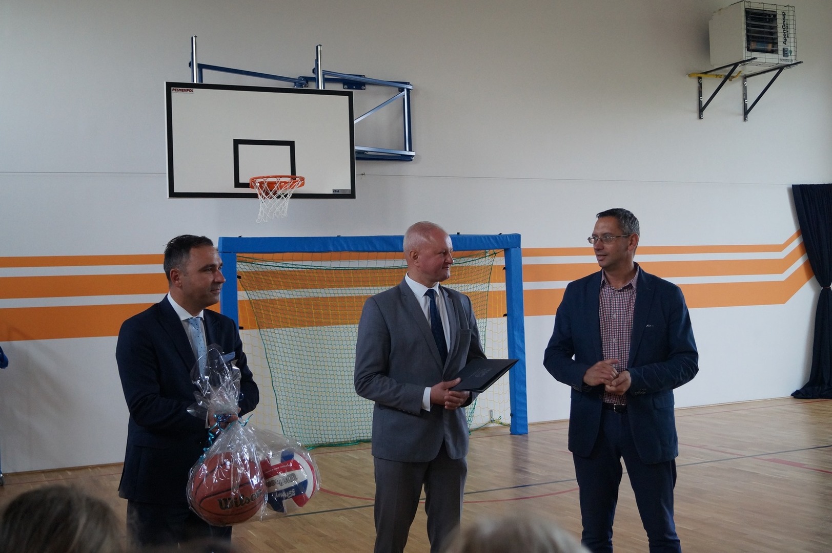 25.09.2020 r. - Serdecznie dziękujemy Panu Arturowi Ciecierskiemu - Burmistrzowi Zakroczymia oraz Panu Pawłowi Calakowi - Wicestaroście Powiatu Nowodworskiego za przekazanie naszej społeczności szkolnej sportowego pozdrowienia i upominku z okazji otwarcia nowego obiektu sportowego.