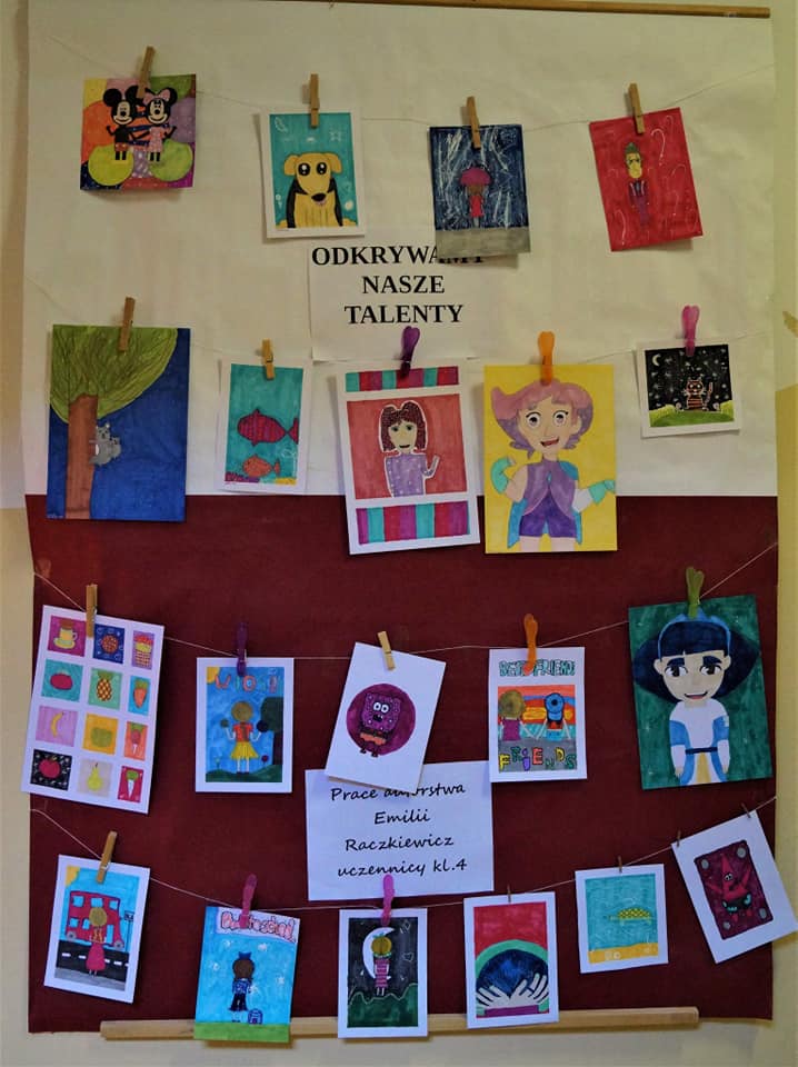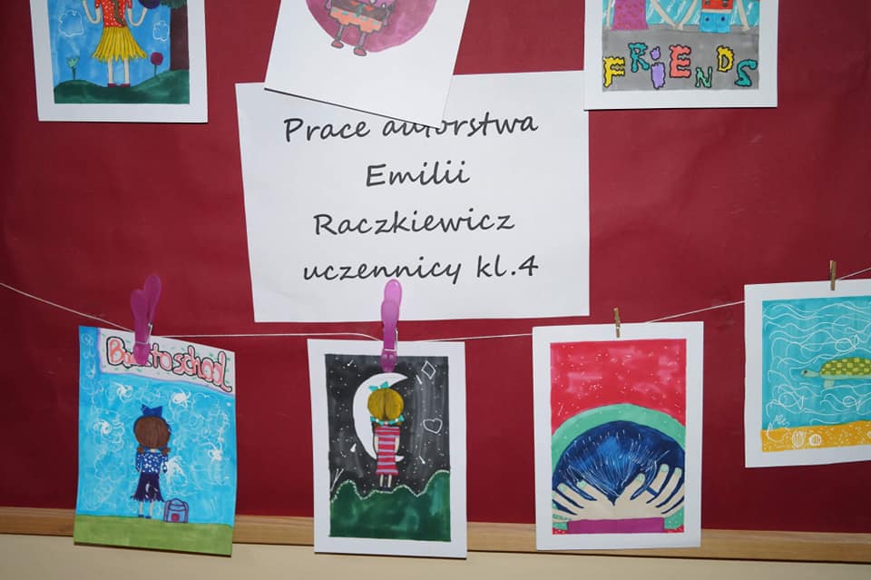 Z ogromną radością prezentujemy talenty naszych młodych pasjonatów. Ostatnio,podczas otwarcia sali gimnastycznej, podziwialiśmy wspaniałe pokazy sportowe uczniów z klas od 3-8, dzisiaj natomiast przedstawiamy prace plastyczne uczennicy klasy 4 Emilii Raczkiewicz. Wystawa przepięknych obrazków dziewczynki cieszy się dużym zainteresowaniem wśród koleżanek i kolegów. Warto pokazywać rówieśnikom rozmaite możliwości spędzania wolnego czasu i rozwoju własnych zainteresowań.