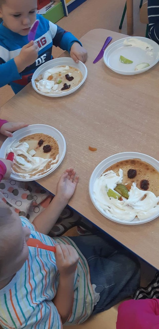 Było mnóstwo dobrej zabawy, radości, tańca, trochę sportowej rywalizacji (tory przeszkód, rzucanie woreczkami do celu, itp.) oraz golenie brody z bitej śmietany na naleśniku- wszyscy świetnie się bawili