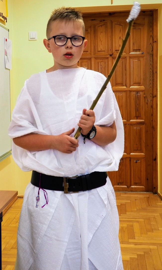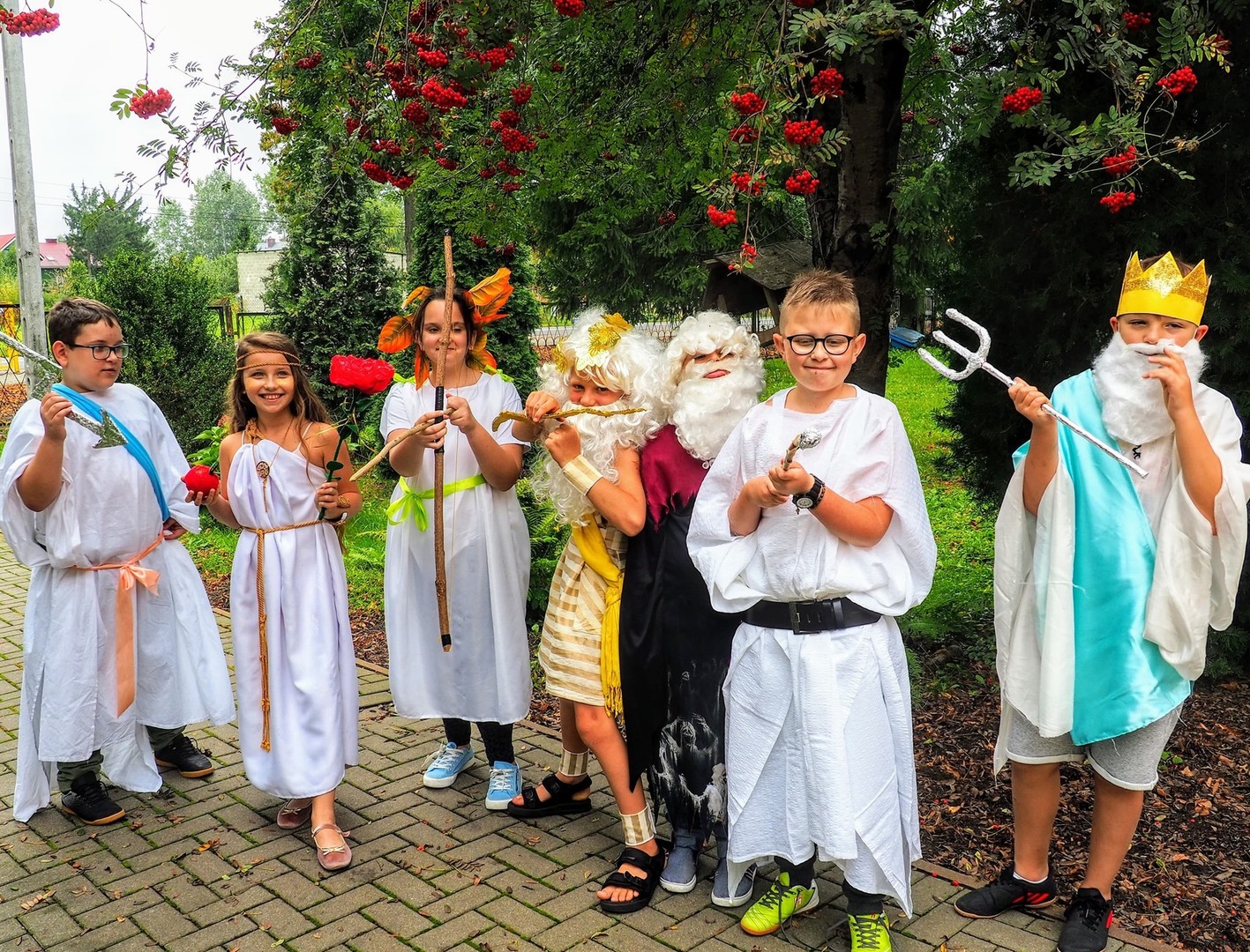 Mity greckie zawsze są entuzjastycznie przyjmowane przez uczniów klasy piątej. Dzieci nie tylko chętnie czytają teksty obowiązkowe, ale też wzbogacają swoją wiedzę o dodatkowe opowieści, a wcielanie się w bohaterów mitologicznych przynosi im nie lada frajdę. Uczniowie z dużym zaangażowaniem podchodzą do wszelkich zadań dotyczących mitologii.