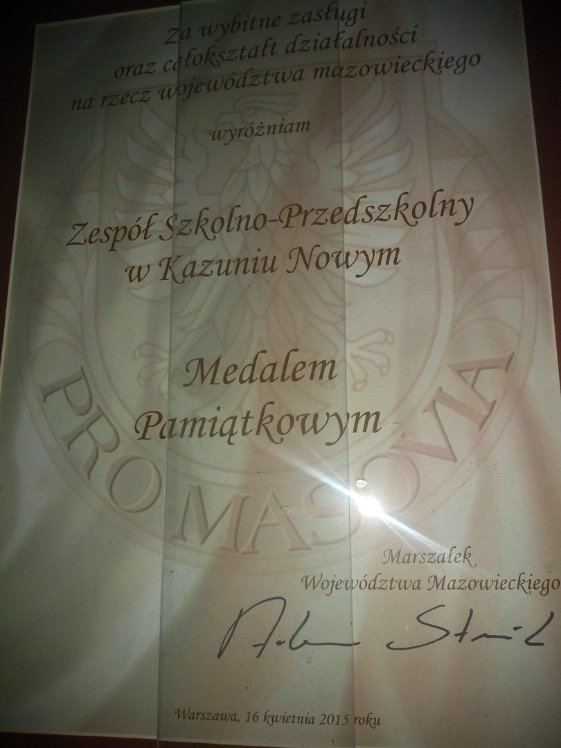 Nasza Placówka oraz nasz Dyrektor, za wybitne zasługi i całokształt działalności na rzecz Województwa Mazowieckiego, zostali odznaczeni najwyższym wyróżnieniem Marszałka Województwa Mazowieckiego - Medalami PRO MASOVIA.