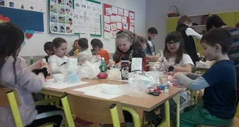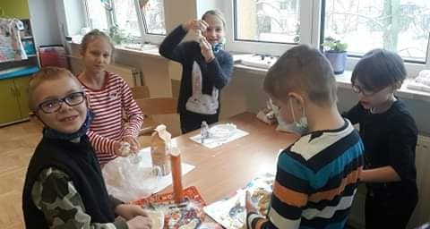 W takich właśnie warsztatach wzięli dziś udział uczniowie z klasy pierwszej i drugiej. Wszyscy z zapałem przystąpili do produkcji własnych, ciągnących się mas w ulubionych kolorach. Zabawa różnego rodzaju masami to wielka frajda. Cieszymy się, że dzisiejszy dzień sprawił naszym uczniom wiele radości!