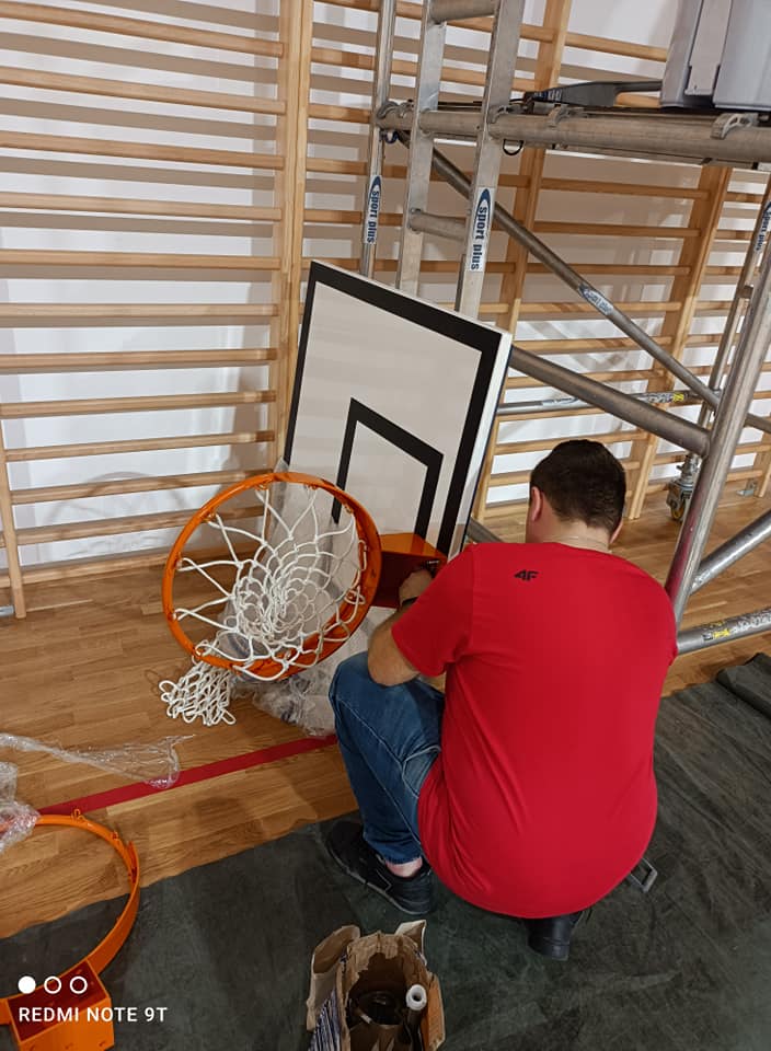 Dziękujemy firmie SPORTPLUS za dotychczasową profesjonalną współpracę. 22.02.2021 pracownicy firmy sportowej zamontowali boczne konstrukcje z tablicami do koszykówki.
