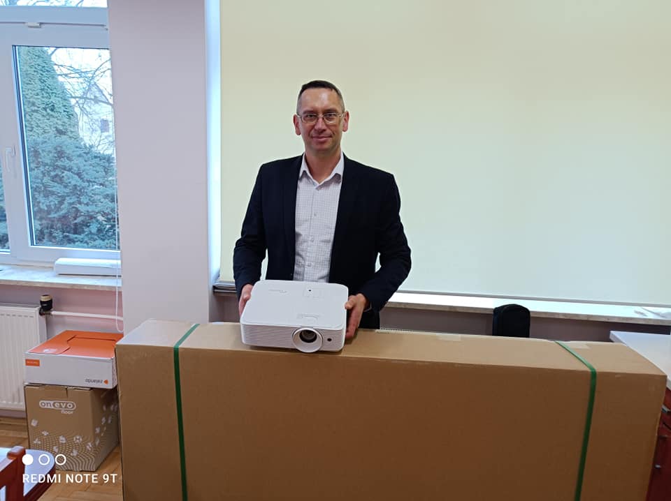 4 marca 2021 r. w ramach projektu pn. "Mazowiecki program przygotowania szkół, nauczycieli i uczniów do nauczania zdalnego" dyrektor Krystian Buszta odebrał kolejny sprzęt multimedialny w postaci monitora aktywnego, projektora, oraz ekranu projekcyjnego.