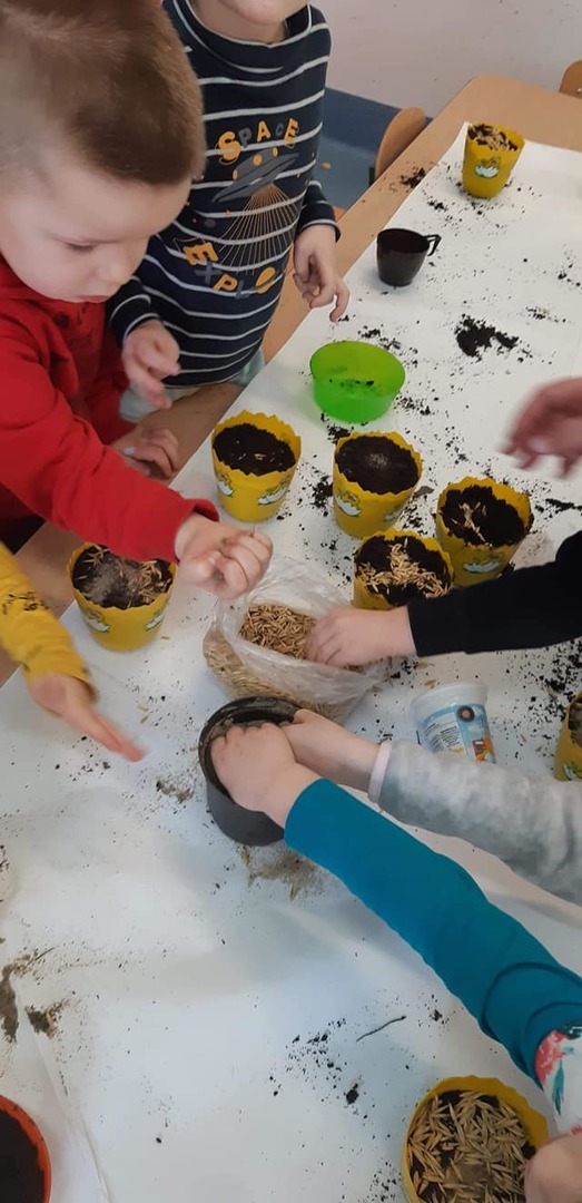 zaprezentowały zasiany w przedszkolu, a wyhodowany przez siebie w domu owies