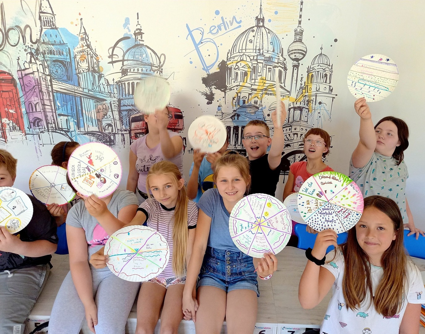 Nauka przez zabawę to dobry sposób na realizację zadań podczas upalnych, czerwcowych dni. Uczniowie klasy 4 w małych zespołach opracowali kreatywne sposoby spędzania wolnego czasu. Zamiast zeszytów, dzieci wykorzystały papierowe talerzyki, co okazało się dodatkową atrakcją. Uczniowie doskonalili umiejętność współpracy w grupie, jak również tworzenie rozbudowanych wypowiedzeń. Towarzyszył im uśmiech i radość z dobrze wykonanego zadania.