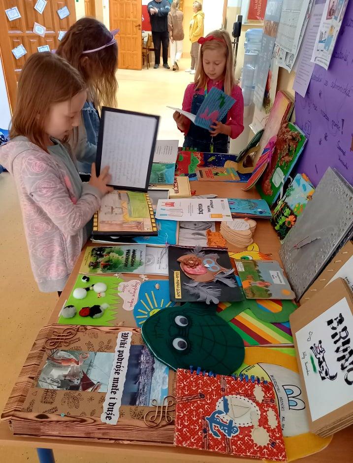 Dzięki uprzejmości biblioteki pedagogicznej z Nowego Dworu Mazowieckiego, uczniowie naszej szkoły mogą podczas przerw podziwiać prace koleżanek i kolegów. Małe dzieła z konkursu "Wydajemy Własną Książkę" cieszą się dużym zainteresowaniem i już stały się inspiracją do własnej twórczości.