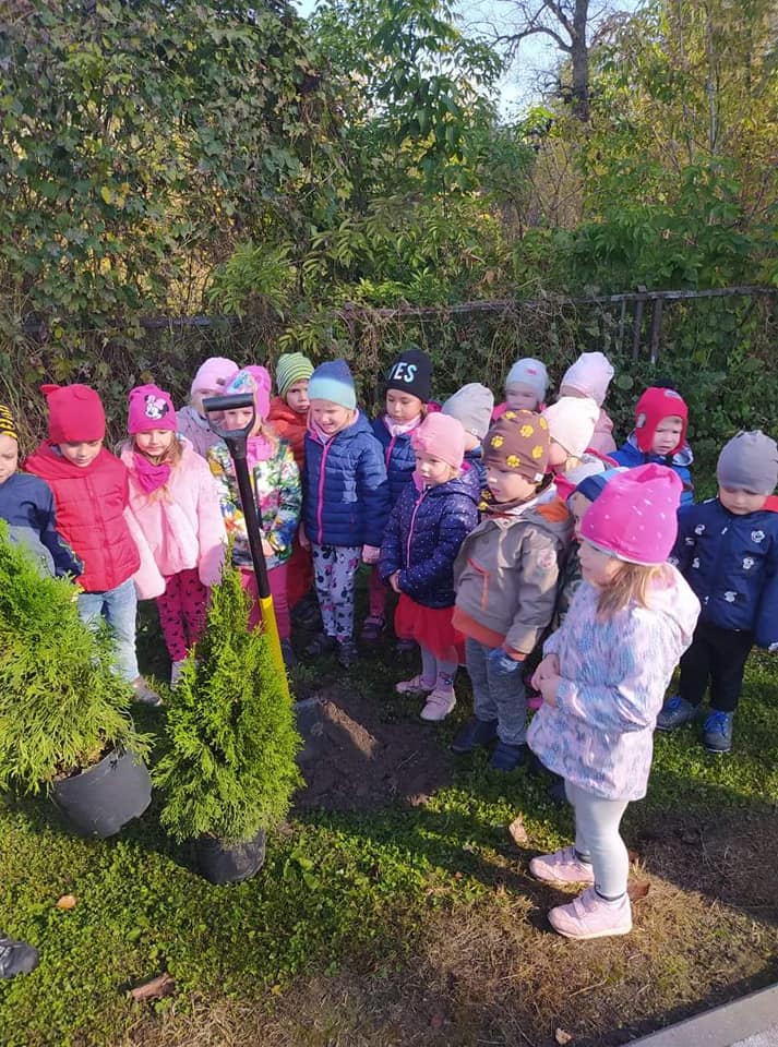 Wysłuchały ciekawostek na temat drzew i wykonały pracę plastyczną. Jak co roku przedszkolaki włączyły się w akcje sadzenia drzew, dzięki temu nasz teren przedszkolny stał się jeszcze bardziej zielony