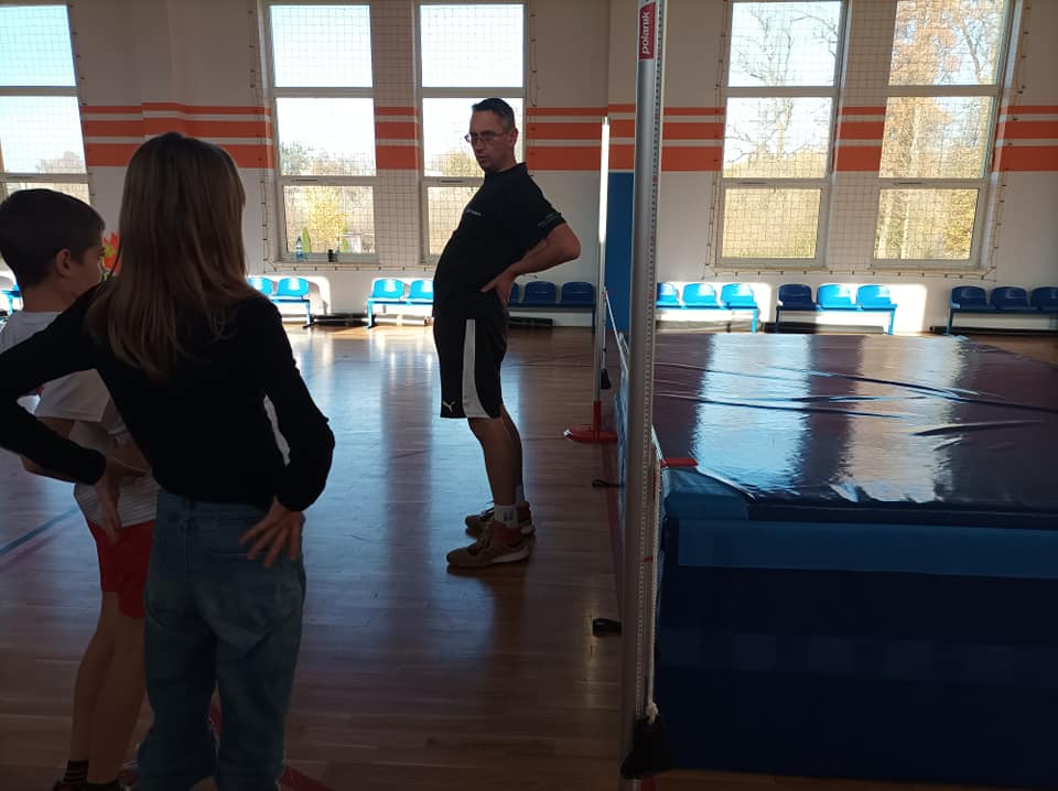 25 października 2021 na zajęciach SKS uczniowie zapoznali się z zeskokiem do skoku wzwyż wykonując przewroty wprzód i w tył, skoki stylem nożycowym, skoki z miejsca tyłem oraz techniką flop.