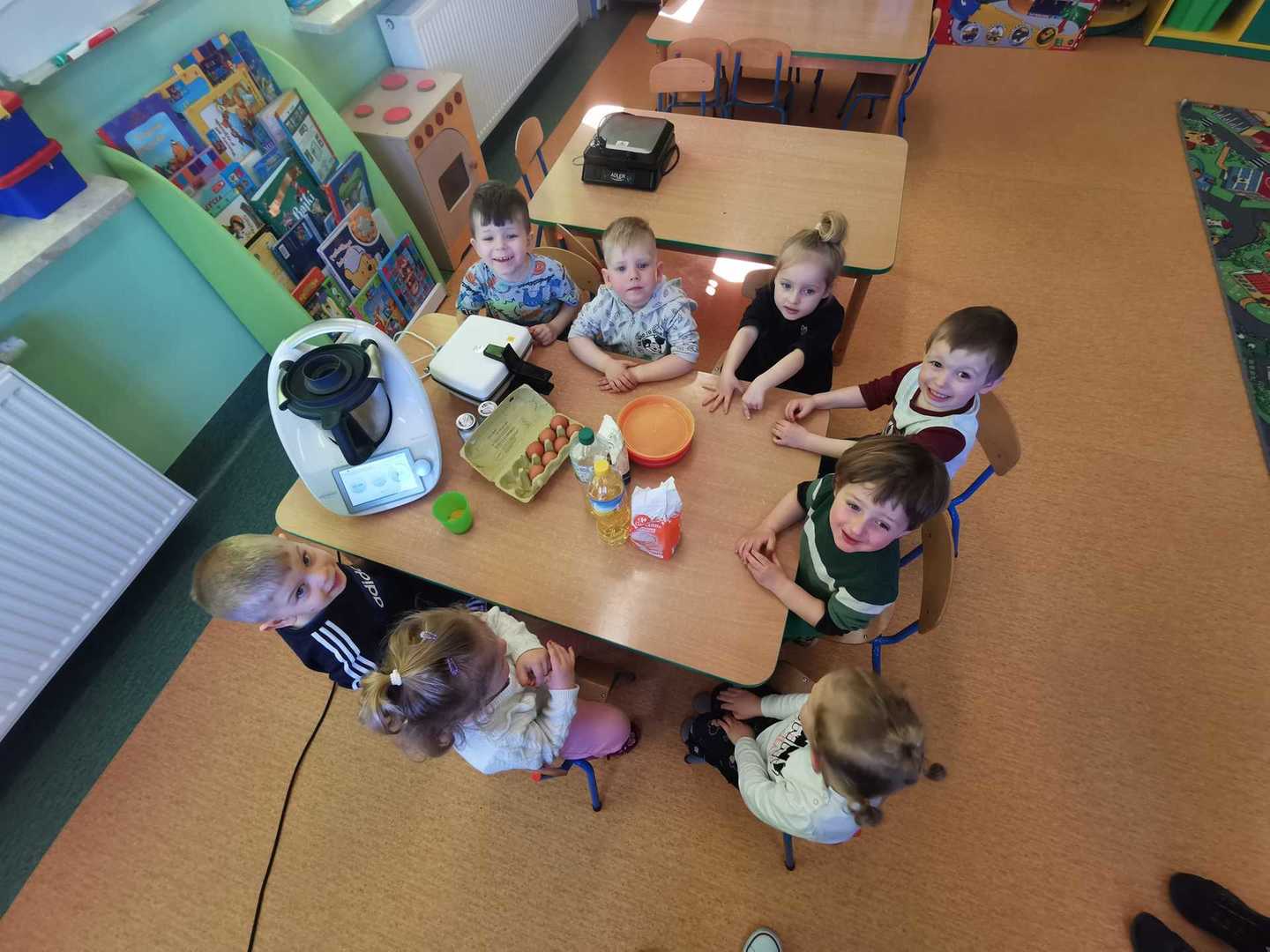 Na ostatnich zajęciach z Kuchcikowa, najmłodsza grupa wykonała pyszne gofry. Przekąska cieszyła się ogromnym powodzeniem, dzieci zajadały je ze smakiem