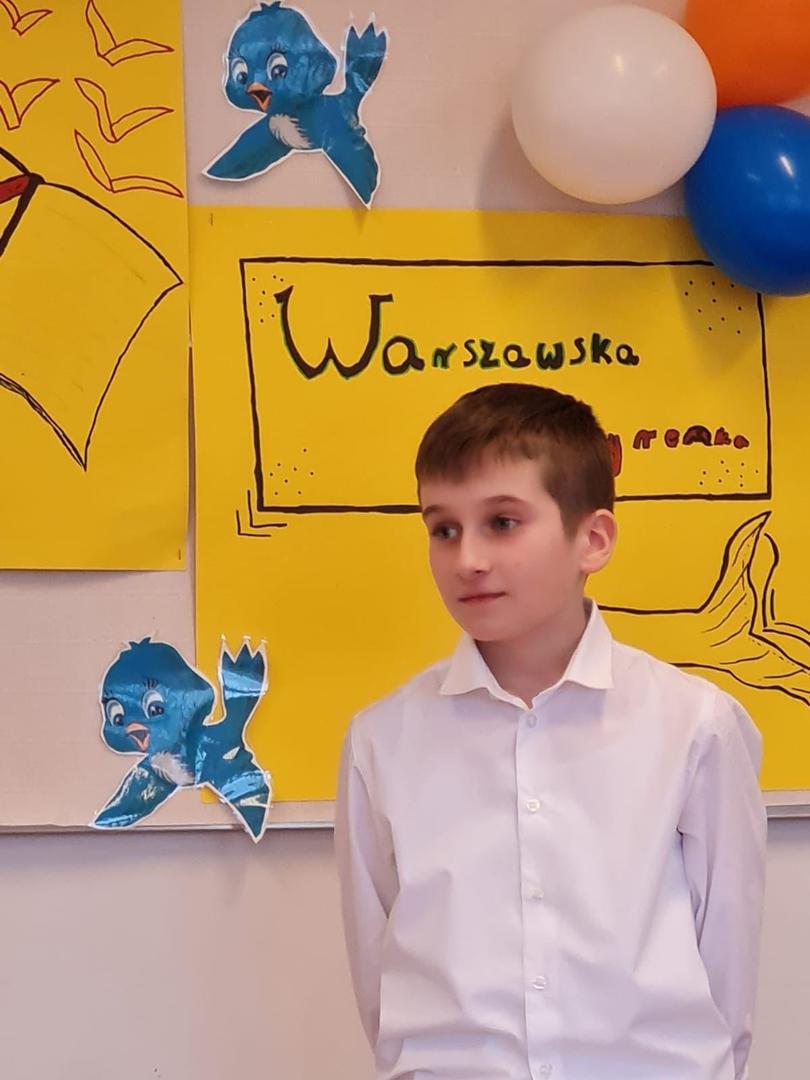 W wojewódzkim etapie 45 Konkursu Recytatorskiego Warszawaska Syrenka naszą szkołę reprezentował będzie Stanisław Musztyfaga, uczeń klasy 7. To ogromne wyróżnienie, z którego jesteśmy dumni i trzymamy kciuki za dalsze sukcesy.
