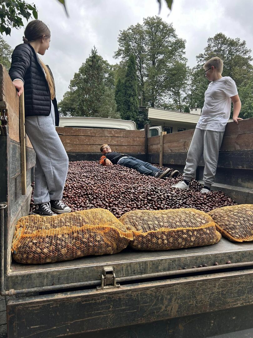 Udało nam się zebrać 2,5 tony kasztanów, a tym samym do puli Samorządu Uczniowskiego trafia 2500 zł.