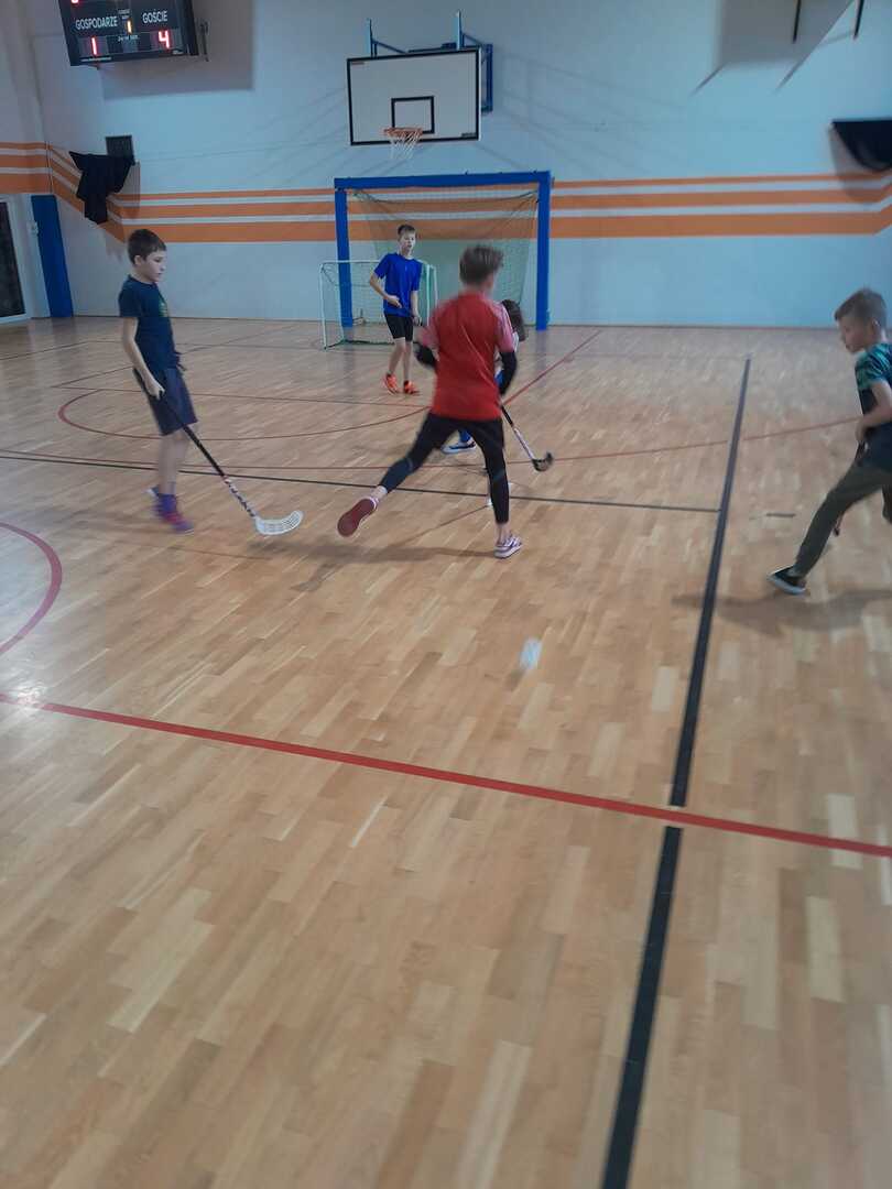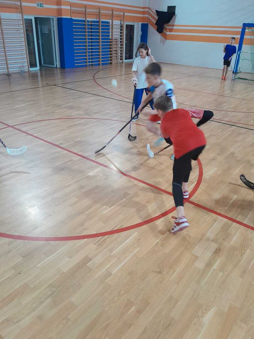 Na zajęciach w ramach programu SKS zdobywamy różne sprawności. Uczniowie z klas 4-8 doskonalą grę w unihokeja.