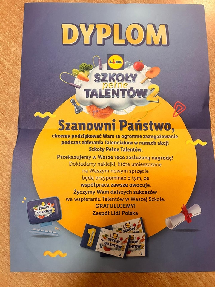 Otrzymaliśmy nagrody za TALENCIAKI, zebrane w akcji „Szkoły pełne talentów”, prowadzonej przez Lidl.