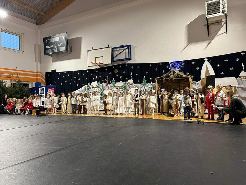 19 grudnia 2023 roku w naszym przedszkolu odbyły się Jasełka Bożonarodzeniowe w wykonaniu wszystkich grup. Dzieci w strojach Maryi, Świętego Józefa, pastuszków, królów i aniołów w przejmujący sposób opowiedziały historię Bożego Narodzenia. Celem wystąpienia było wprowadzenie wszystkich w świąteczną atmosferę, pełną radości z Narodzenia Pana. Podczas występu dzieci zaprezentowały cały wachlarz swoich umiejętności: wokalnych, recytatorskich i tanecznych.